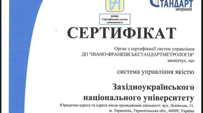 Фахівцями незалежного агентства було проведено аудит системи управління якістю, який підтвердив, що Класичний університет Тернополя відповідає усім критеріям ефективного менеджменту якості, визначеними міжнародними нормами. «Сертифікат засвідчує, що ЗУНУ має чітко налагоджені внутрішні процеси управління, орієнтовані на постійне вдосконалення освітньої діяльності, високий рівень наукової роботи, якісний сервіс для студентів, викладачів та партнерів. Документ підтверджує впровадження міжнародних […]