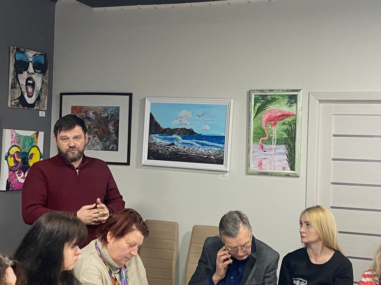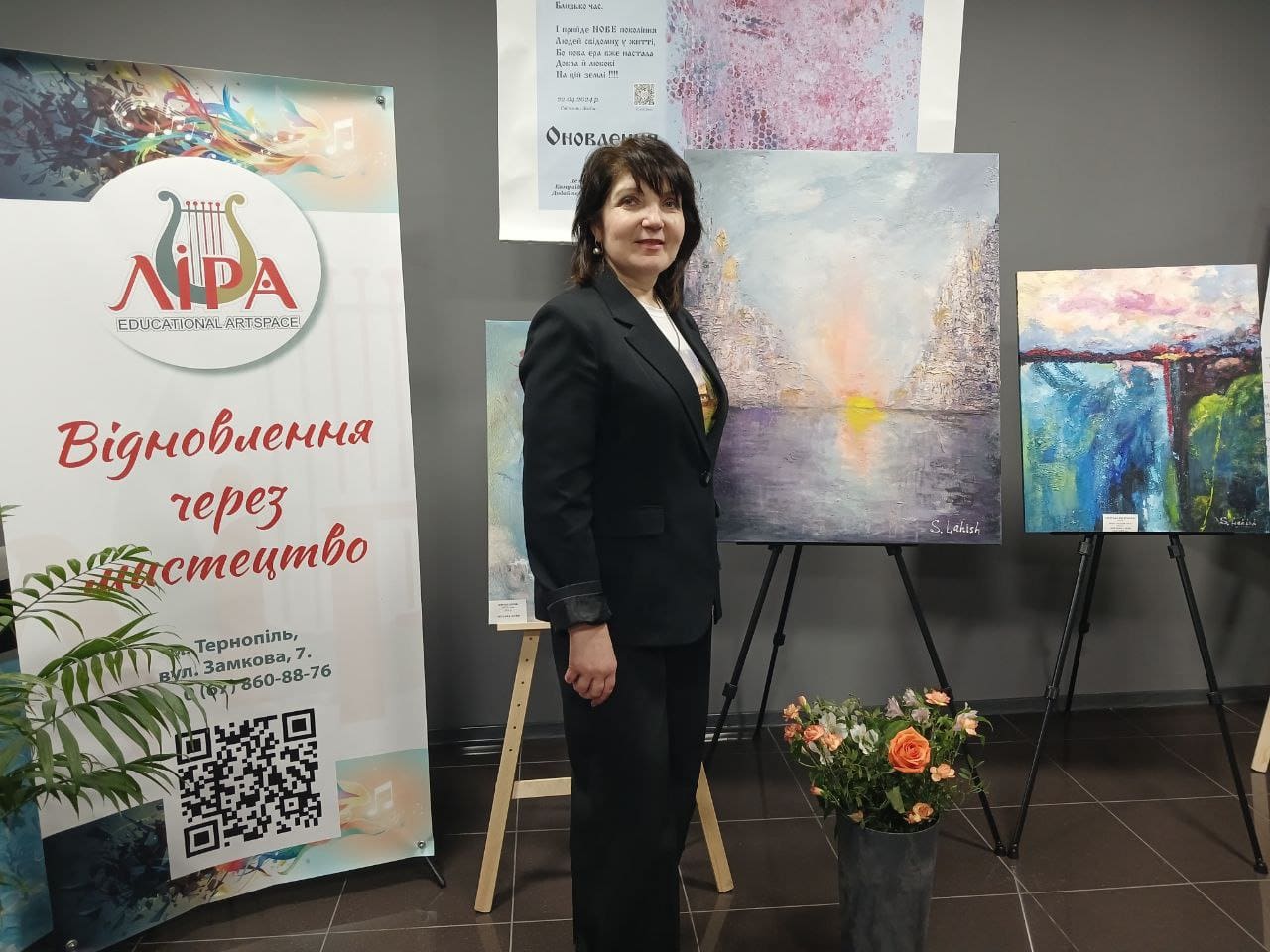 Особливу атмосферу зустрічі створила відома тернопільська художниця Світлана Лагіш. Вона поділилася своїми роздумами про роль митця у часи випробувань та презентувала нову роботу “Українське сонце зійде”. Картина, сповнена світла і віри, стала символом надії та переконання у неминучій перемозі України, де мистецтво відіграє важливу роль.