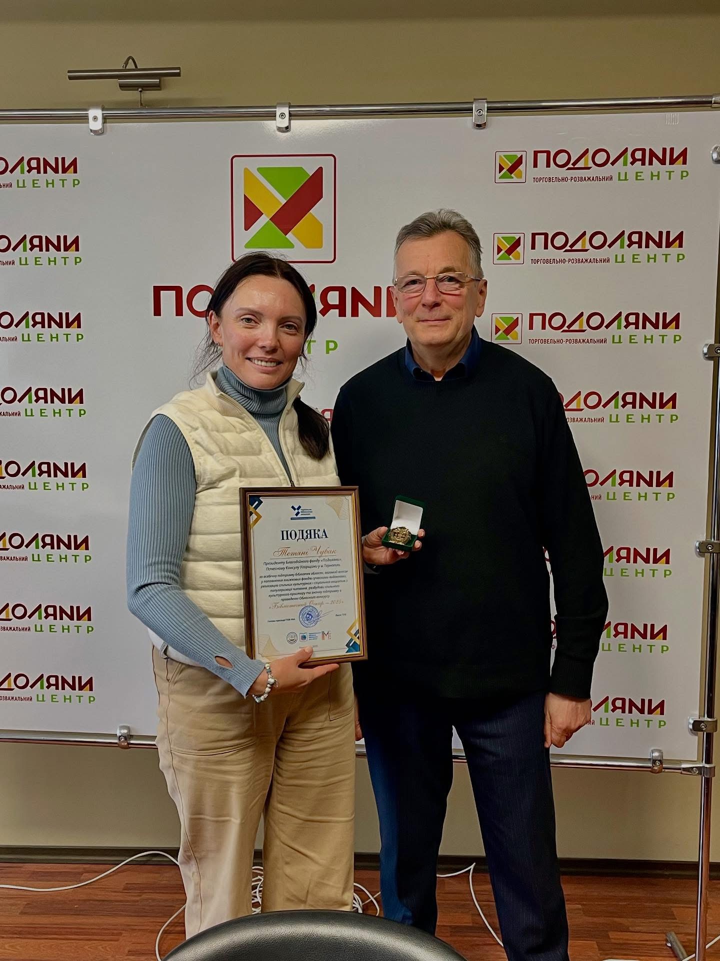 Директорка БФ «Подоляни» Тетяна Чубак отримала подяку за вагомий внесок у поповнення бібліотечних фондів