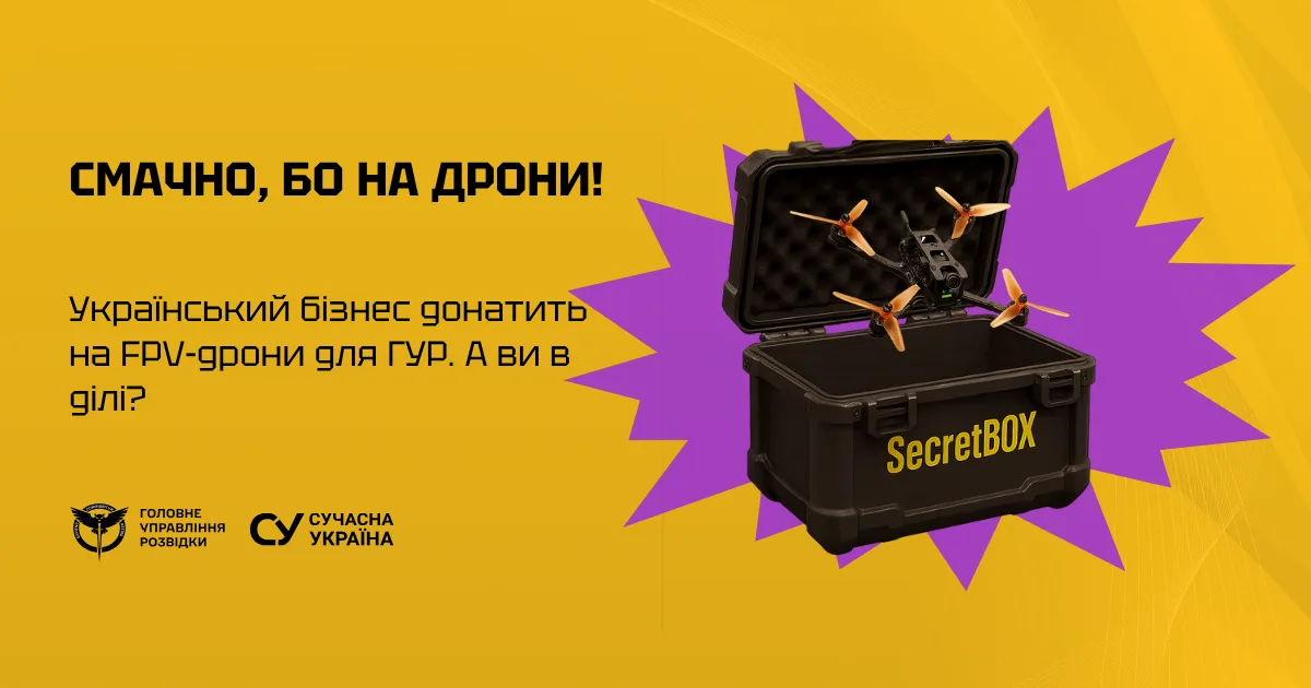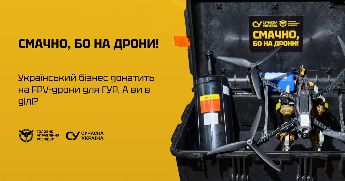Фонд “Сучасна Україна” розширює благодійну кампанію “Смачно, бо на дрони!” і закликає український бізнес — не лише ресторанний, а з усіх сфер — долучитися до збору коштів на FPV-дрони для Головного управління розвідки Міністерства оборони України.